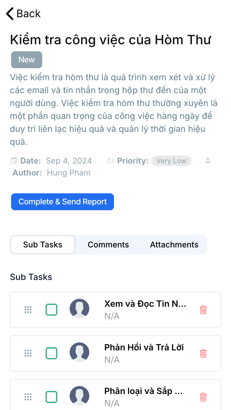 Ứng dụng đã giúp nhóm của tôi phối hợp công việc trơn tru hơn rất nhiều. Không còn bỏ sót nhiệm vụ nào và ai cũng nắm rõ việc mình cần làm mỗi ngày. Rất hữu ích!